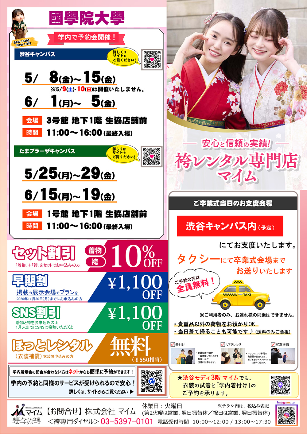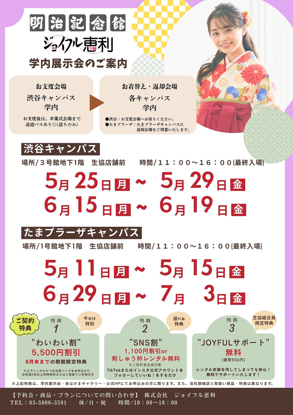 生協では毎年、卒業式にお召し頂くための着物・袴のレンタルを取扱っております。